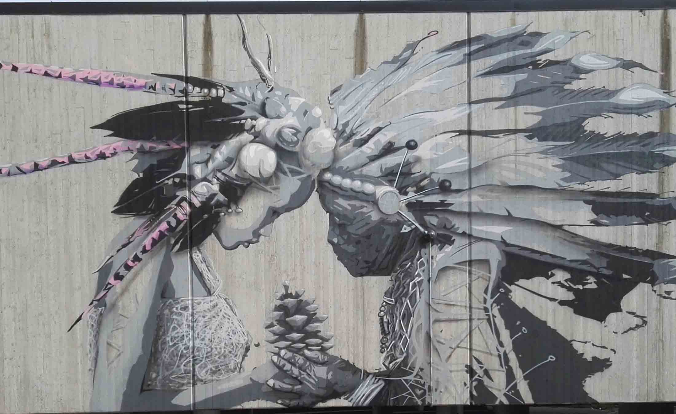 AFK is a Bergen based street artist. His classic, monochrome stencils are often laced with political undertones, and his discrete use of color, usually just pink and purple, makes his work easily recognizable. For the last few years he has established himself amongst the elite of norwegian street artists with his work being some of the most exeptional that the city has to offer.