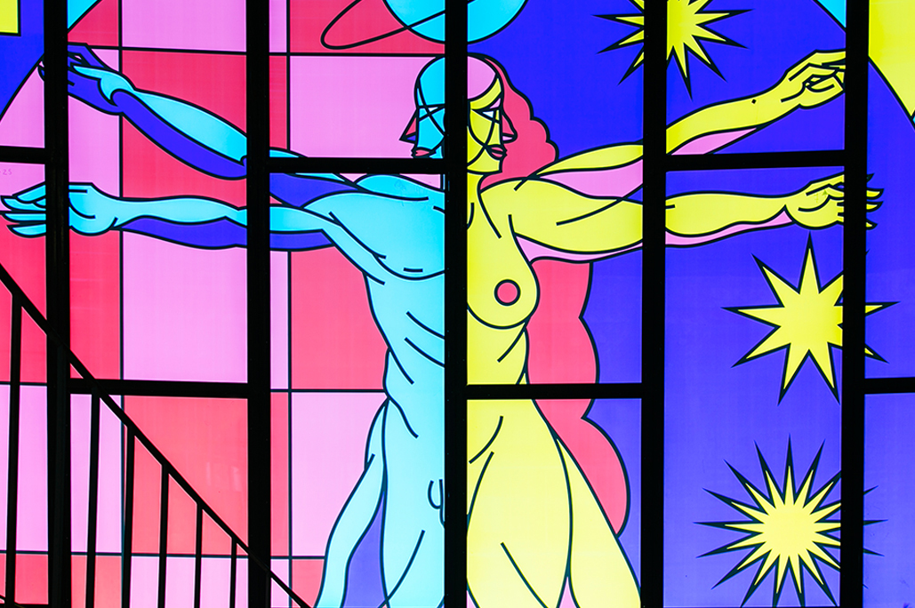 Akacorleone is Pedro Campiche (b. 1985), a visual artist of Portuguese and Swiss descent who started out as a graffiti writer in the underworld of his native Lisbon. A compulsive drawer, obsessed with all things graphic and visual from an early age, he studied arts and earned a degree in Design and Visual Communication in 2007. After working as a graphic designer in studios for a few years he became fully disappointed with the field and decided to work as a freelance illustrator as a complement to the development of his artistic career. In the field of visual arts he is known today for his dexterity in using colors, typography, characters and refined forms which he blends to achieve eye-catching compositions imbued with originality and all - pervasive humour. He has been exhibiting his work on solo and collective exhibitions since 2010