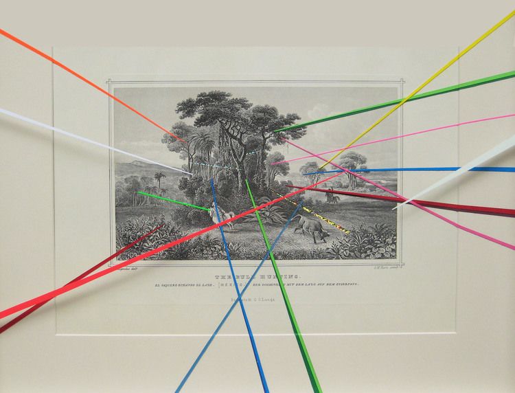 In recent years his research has developed around the historical memory of landscape and its transformation over time. For this he has been in the task of editing and then transforming the work of artists such as Claude Lorraine (1600-1682), Mortitz Rugendas (1802-1858) and José María Velasco (1840-1912). Pintado research is not only in aesthetic and plastic assessing these landscapers, his interest is on the cosmogony of the time in which these artists worked. The historical distance allows us to have a broader vision of the socio-political events of the past and see more clearly the view of the period in which they were made. Thus Pintado takes certain aspects of these views, selecting pristine landscapes that are unattainable at present then intervenes them with contemporary objects. This confrontation of dissonant elements allude to the notion of modernity in which all periods of history coincide at one time.