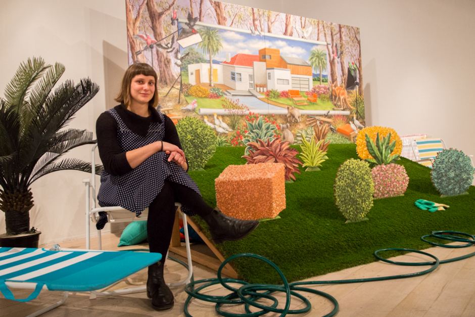 Amber Koroluk-Stephenson is a visual artist whose practice draws on the intersections between natural and man-made environments to explore complexities surrounding Australian identity and landscape, structures of the facade, and paradoxes of taming or staging the landscape. Her work plays on the contrasts between the wild and domesticated, natural and artificial, interior and exterior, civilized and non-civilised, familiar and unknown to fulfill the human desire to connect with nature and make visible what is out of sight.