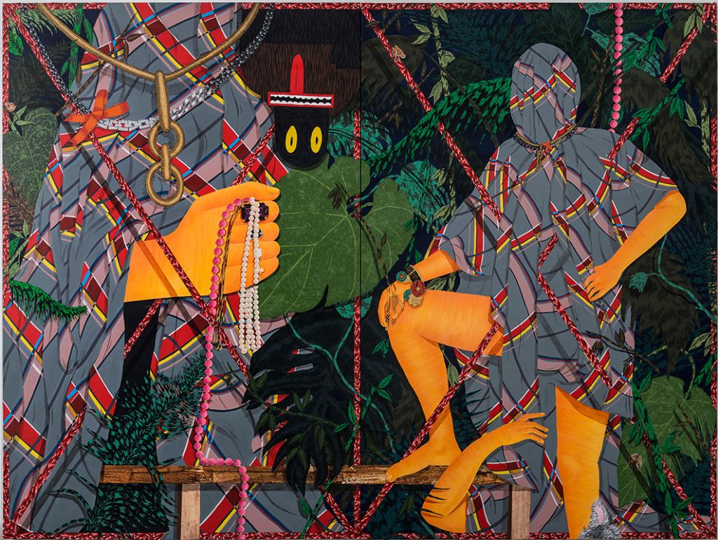 Fallah interrogates systems of representation embedded in the history of Western art. His ornate environments combine visual vocabularies of painting and collage with elements of installation to deconstruct material modes of identity formation. Portraits of veiled subjects capitalize on ambiguity to skillfully weave fact and fiction while questioning how to create a portrait without representing the physicality of the sitter. While the stories that surround his subjects are deeply personal and are told through the intimate possessions they hold most dear, his work addresses generational immigrant experiences of movement, trauma, and celebration. Fallah wryly incorporates Western art historical references into paintings formally rooted in the pattern-based visual language of Islamic Art. In doing so, his paintings possess a hybridity that reflects his own background as an Iranian-American immigrant straddling cultures.
