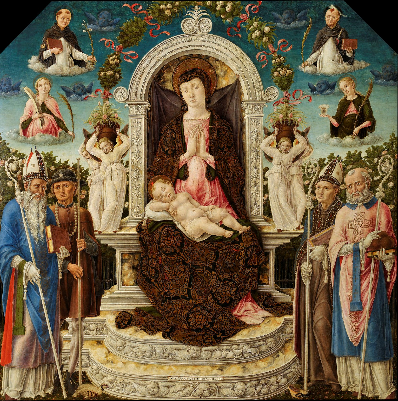 Bartolomeo Vivarini was the second member of a family of painters from the Venetian island of Murano who sustained over fifty years of considerable prestige and commercial success during the second half of the fifteenth century. He studied under his elder brother Antonio, with whom he collaborated after 1450. He probably trained in Padua as well and, in his early works especially, his debt to Andrea Mantegna is easily discerned. The output of the Vivarini workshop was vast, supplying both local Venetian clients and patrons further afield, in other parts of the Italian peninsula and across the Adriatic basin on the Dalmatian coast. Bartolomeo's first independent dated work is from 1459 and his practice developed rapidly thereafter. By the end of the 1470s, he had cornered the market for altarpieces in Venice, alternating between multipaneled structures (or polyptychs) with figures often set against gold backgrounds, and the more modern format of figures depicted in a unified space against a landscape or interior. During the 1480s, when Bartolomeo's style became increasingly linear and spare, his clientele shifted west, to small rural towns north of Bergamo. Bartolomeo’s last dated work is a triptych from 1491 today in the Accademia Carrara. Alvise Vivarini, Antonio's son but possibly Bartolomeo's pupil, carried on the family workshop.
