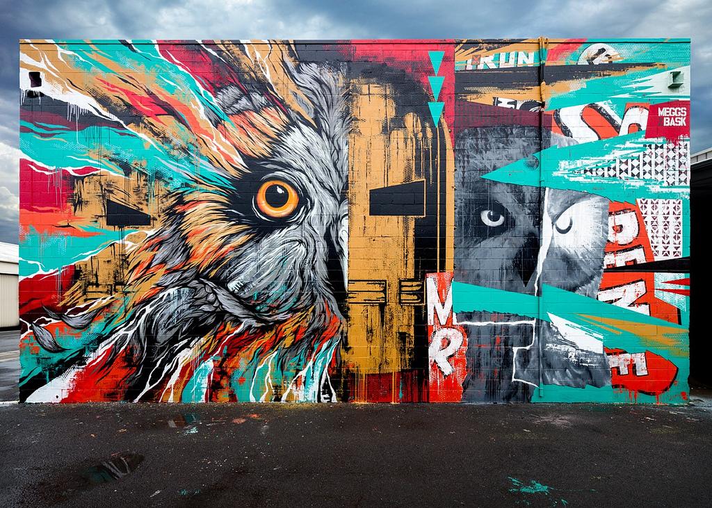 Bask is the moniker of one, Ales “Bask” Hostomsky, who along with his parents emigrated from Czechoslovakia to Florida and began to soak up America’s popular iconic imagery along with the sun. The artist’s richly textural work imbue his “anti-iconic,” sometimes satirical worldview with an undercurrent of dark emotion. Combining his graphic skill with his trademark multi-layered applications, Bask builds up the surface only to break down the image.