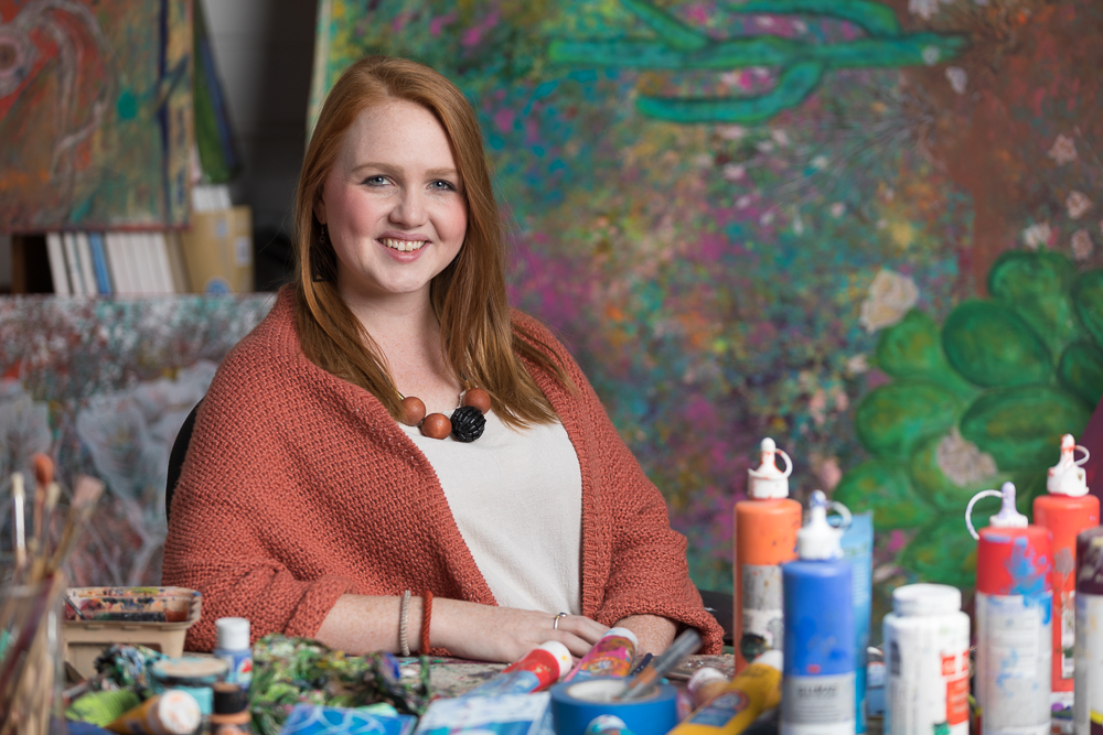 Caroline Adam is a San Antonio artist, born in 1991. She graduated from Alamo Heights High School ISD in 2010, and went on to achieve an undergraduate degree at Texas A&M University- Kingsville with her Bachelor of Fine Arts- Studio Art in the spring of 2015. In college, she had the opportunity to co-curate shows, which lead to one of her professors giving her the position to be the head curator for a show called, “Body of Works” at the Ben Bailey Art Gallery in 2013. In the summer of 2013, she won a scholarship that went towards a study abroad trip to Yokosuka, Japan. In Japan, she was able to lead workshops in drawing to local high school students, be interviewed by the news, and meet with the Major of Yokosuka. She displayed her artwork for two senior shows in the fall of 2014 exhibition, Jack of All Traits. After graduation, she moved back to her home town of San Antonio where she wanted to find her voice in the art culture. On April 1st 2016, she moved into her first studio space at Hausmann Millworks, and then went on to have her first solo exhibition on April 6th at Artists with a Mission. Since April she has vended, live painted, and or shown in locations like: Blue Star Brewery, La Villita, San Antonio Collab, Limelight, The Aztec, Heart House Gallery, Art Matter's Gallery at Blue Star Complex, the UTSA Alumni Gala, and the Albert Gonzales Studio/Gallery. Caroline has three paintings in the UTSA Art Collection. With no plan of leaving San Antonio anytime soon, the future is big, and she cannot wait to keep exploring her inner artist while inspiring people around her.