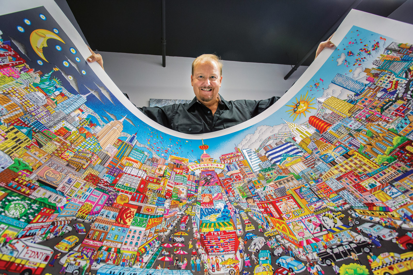 Charles Fazzino is an American pop artist, known for his silkscreen serigraphs in a 3D pop art style. His artwork incorporates influence from urban landscapes, sporting events, and modern celebrities. As described in the book about Fazzino titled The Master of 3-D Pop Art, "An innovative and imaginative storyteller, Charles Fazzino serves up a bevy of details in his unique three-dimensional creations. His collectors marvel as much at his ability to capture the entire essence of his subject matter in one statement, as they do at his use of vibrant colors, his whimsical sense of humor, and his hand-assembled multi-layered artistic style. Although​ the snappy titled often gives a clue to the content of each painting, it can take years of careful observation to discern all of the details in a single Fazzino image. One of Fazzino's greatest joys is to observe visitors at exhibitions of his work. 'I love to watch the smiles form as people begin to recognize elements of my paintings,' comments Fazzino. 'They point at the images as if inserting themselves into the stories. I watch that and I'm reminded of why I paint. It's all about celebrating the joy and fun we have as human beings on this planet."
