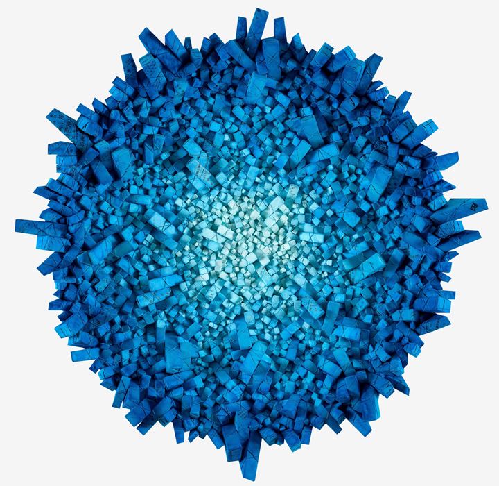 To me, the triangular pieces wrapped in mulberry paper are basic units of information, the basic cells of a life that only exists in art, as well as in individual social events or historical facts. By attaching these pieces one by one to a two-dimensional surface, I wanted to express how basic units of information can both create harmony and conflict. This became an important milestone in my long artistic journey to express the troubles of a modern man who is driven to a devastated life by materialism, endless competition, conflict, and destruction. After almost twenty years, I was now able to communicate with my own gestures and words.