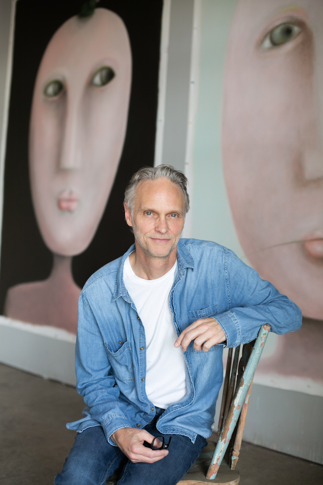 The idea of meditation and contemplation play a major role in the paintings of artist Craig Carlisle. His paintings articulate indelible images which evoke an emotional response from the viewer. The series of heads are generally large canvas’s deliberately created on a scale that will empower a room. Each expression Carlisle creates in his paintings are meant to pull from one’s subconscious. The heads are typically anonymous and genderless, almost child-like. Carlisle opts to place the focus for the viewer on the expression of each head, thus eliminating the personal style we create for ourselves with hair or fashion. “I never use humans as reference for my paintings, instead I create fictitious characters. Through these, I channel the emotions each of us experience in our daily lives.” says Carlisle. Carlisle’s series of head paintings he created in the early to mid 90’s helped him become a deeply respected artist who is an original visionary. Though the heads have seen many expressions and stylistic changes over the past two decades, they remain unique works of art. Craig Carlisle (1964) was born in Oklahoma and moved to Ohio where he received his BFA at the Columbus College of Art and Design in 1988. He has lived and worked in NYC, San Francisco, Los Angeles and Columbus. Currently his studio is located outside of Nashville on a 19th century farm. The artist has exhibited in numerous galleries and museums and is highly sought after by art collectors around the world.
