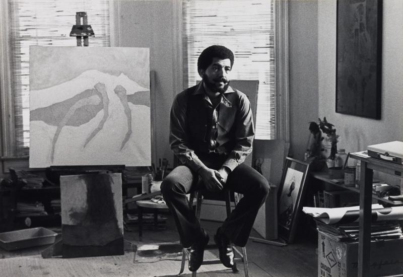 Dan Concholar was born in San Antonio, Texas, on May 23, 1939, although there is no official record of his birth—only his name and birth date written in the family's Bible. His father was a black Texas cowboy who trained quarter horses and hunted. Concholar was still very young when his family moved to Phoenix in the 1940s, and according to the artist, his "conscious life starts in the Mojave."# After spending his formative years in Phoenix, he went to live with his sister in Los Angeles, where he finished high school. Concholar, by nature, dealt with things visually and was always drawing and making comic books. He completed one year at Phoenix College before returning to Los Angeles and enrolling at the Otis Art Institute, where he took classes with Charles White. White's tremendous skills as an artist and educator had a great impact on Concholar's development, as did his encounters with artists such as David Hammons, John Riddle, and Timothy Washington. Though influenced early on by impressionism and abstract expressionism, Concholar gravitated toward art that made a strong visual statement, and his works are notable for expressing content in bold forms and color.