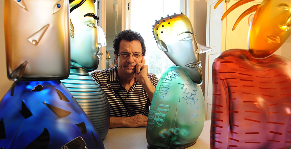 American visual artist Dan Dailey has simultaneously produced sculpture and functional art with an emphasis on lighting since 1970. Made primarily from glass and metal, every piece of work begins with a drawing. Dailey's drawings and the objects they inspire depict human character and the world we inhabit, with many familiar forms rendered iconic. His myriad series explore extraordinary concepts with a broad range of themes and styles. These attributes and his forty years of achievement and recognition have made Dan Dailey a prominent artist in the history of glass, and unique among American artists.