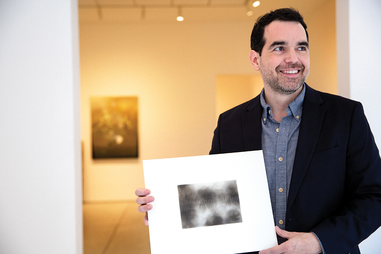 His awards have included the International Association of Art Critics Award for best exhibition in a commercial gallery at the national level (2004) and recipient of both the Joan Mitchell Foundation Grant (2007) and the USA Rasmuson Fellowship (2009). He has been a research fellow, artist-in-resident and visiting scholar at institutions such as the Smithsonian Museum of American History (2011); Rice University (2013-14); the Menil Collection (2014); the Cynthia Woods Mitchell Center for the Arts (2014); the SETI Institute (2016-17); the Robert Rauschenberg Foundation (2017); and at the Radcliffe Institute for Advanced Study at Harvard University (2019). From 2016-19 he was a co-organizer of the International Conference on Mobile Brain-Body Imaging and the Neuroscience of Art, Innovation, and Creativity in Cancun, Mexico and Valencia, Spain. He was co-author and editor for an accompanying publication, Mobile Brain-Body Imaging and the Neuroscience of Art, Innovation and Creativity (2019).