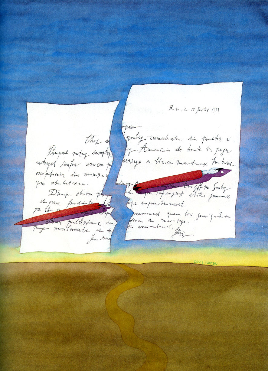 Above all, Devis Grebu is an artist of meaning. Whatever the artistic matter he employs, whatever the form, whatever the means or purpose of his art, Devis Grebu draws and redraws the world - not to highlight its beauty, but the better to contemplate it. To do so both in what it says and in what it hides; both in what it could say and what it would like to say. In the end, to contemplate what he, the artist, feels it ought to say. His gaze, when contemplating the world, in fact performs a reading. In everything he does, Devis Grebu is a passionate seeker of meaning. His line is febrile, for his intelligence is both ardent and meticulous, for all his drawings represent a decomposition of the world according to its most minute signs and unobserved insignia. Line and world combine in Grebu's drawings like the abstract and the figurative in pictographic writings, such that, once meaning has been extracted from the signs of the world by his mobile and avid eye, it is rewritten into the world by his restless hand with a writing overflowing with enormous and at times Homeric artistic verve. His art is not a visual reaction to the world; it is a rewriting of the world, a kind of continual palimpsest manifesto, in which his writing, through its beauty and intelligence, is always the most powerful. His drawings, through their meticulousness and something that exists beyond form (but this side of the logic of the lines), resemble writing. It is an extraordinary, irresistible rewriting of the writing of the world. Devis Grebu graphically besieges the events he addresses. He is a brilliant strategist in the conquest of meaning, achieved by bringing victoriously to their knees all the different meanings reality appeared to possess, before taking aim at it and then, after conquering it, possession of it. He stands before reality as did most likely Demetrius Poliorcetes, the brilliant strategist, before the city he was about to besiege. Poliorcetes, the besieger of cities, made them one with the earth. Devis Grebu, the besieger of meaning, makes reality one with his meaning. Devis Grebu is an artist who fundamentally reinvents the event and who, leaving no means of escape, besieges the opportunity provided by the spectacle that is the world, an artist who rewrites every graphic formulation of the world in his own meticulous and hieroglyphic writing. Viewing his art, you have the impression of reading the world. Revisiting it, you have the joyous feeling of rewriting it.