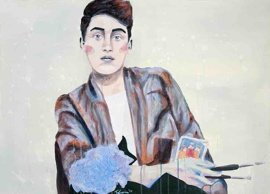 The German painter with an Italian background, Doménico CV Talarico, was born and raised in Gießen in 1989. Today, the artist lives and works in Berlin and creates his dreamy paintings which simultaneously convey a melancholy of past eras. Fascinated by people and their stories, Doménico CV Talarico frequents flea markets to purchase photographs of people unknown to him who lived decades ago. Images that give off a special aura to him, for example, through a deep gaze, an interesting scenery or a short anecdote on the back - these are photograph the artist reinterprets and transfers to canvas to let them awaken to new life. Following the question of human identity, Doménico CV Talarico employs flowing brush strokes to create his figures in pastel colors. The artist creates a fictitious world in which people come back to life. Thus, the observer of his works looks at men, women and children from the 1900-1950s. His unique style allows room for interpretation, who these people were and what they experienced, causing viewers to sink into their own world of thoughts and reflect on deeply ingrained dreams and desires.