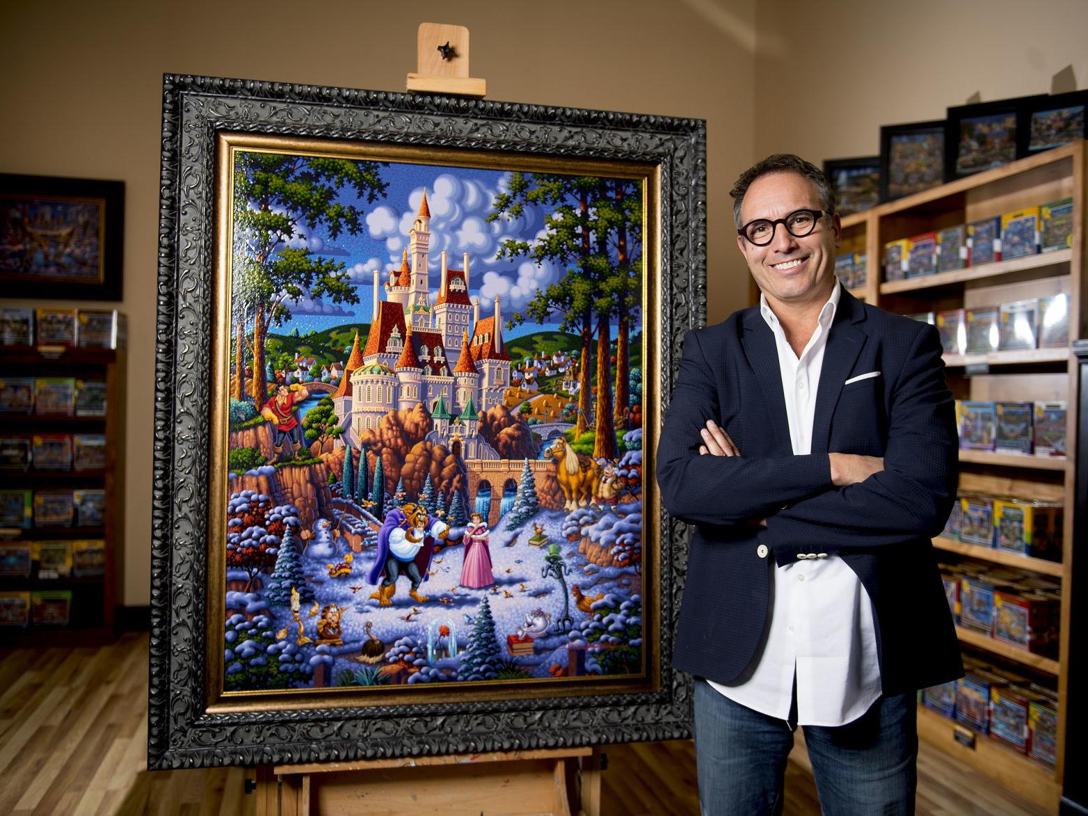 Today, most of Eric’s art pieces have been manufactured into Dowdle Puzzles. In 2010, Eric sold his first millionth puzzle. He celebrated by throwing a large party for the community featuring classic American foods, puzzle contests, and giveaways. One year later, he sold his second millionth puzzle. The community came together to celebrate with him once again. Eric’s Dowdle Puzzles have been a runaway hit. They’re now distributed throughout the United States and the world. Shop his collection.