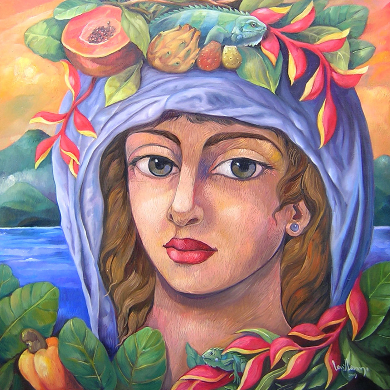 Erwin Guillermo is a Guatemalan expressionist artist born in Guatemala City in 1951. Expressionism and symbolism glows in themes such as traditions, politics, festivities, popular icons, and social contradictions like anguish, despair, and love. In his colourful works, fruits, animals and the exuberance of the Guatemalan Tropics figure mesh to transmit emotions and establish a dialogue between spectator and the artist.