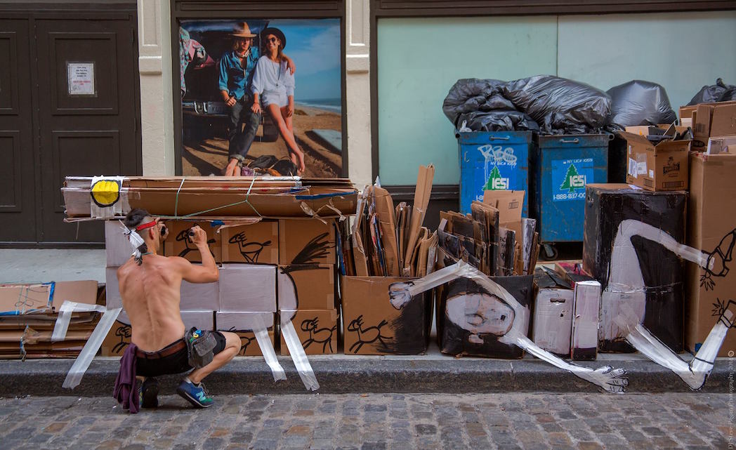 “Art is Trash” (El Arte Es Basura) is the street name of Barcelona-based artist Francisco de Pájaro, who takes action when he sees a pile of rubbish and creates art with it, rearranging boxes, garbage bags, broken furniture, old mattresses,….and then paints it, sticks it with tape, leaves his trademark moniker and walks away. He usually works in the evenings and takes him between five and twenty minutes to make an artwork, and then he has to run in order to avoid police officers. All of Pájaro’s pieces can easily be seen as artistic suicide, creative works destined to be destroyed in a bin lorry, but in the social media has found the permanence of his art that he is unable to achieve in real life, under the hashtag #artistrash. He creates art out of something society considers gross and disgusting. Garbage is hated, ignored, considered smelly and rotten, but for him has become a place to create monsters, to make fun of politicians and the capitalist system. A way to express himself without inhibitions.