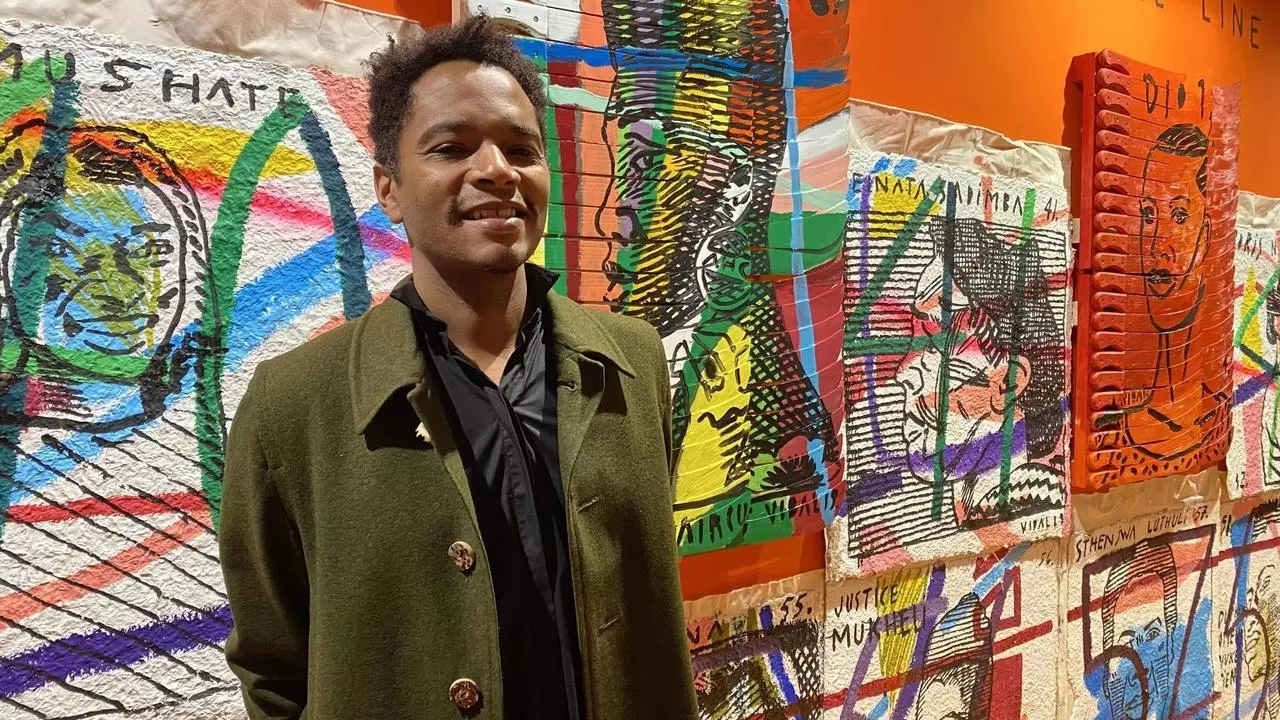 Vidal is best known for his paintings and drawings which bring together bold colour and pattern on handmade paper or canvas, often tiled together to create installations. The artist’s work playfully blends various aesthetic influences, including Cubism, African wax-print textiles, and 1980s hip-hop culture, as well as contemporary graffiti and street art. Born in Portugal to Angolan and Cape Verdean parents, the artist deals with ideas which are closely tied to the diaspora experience, examining narratives and identities which arise from a hybrid of cross-cultural upbringing. Colonial histories and their consequences are interrogated in his work, with a strong emphasis on the impact of labour practices, conflict and violence.