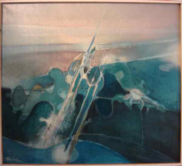 In the work of Frans Buitinga (1930-1994) his relation to nature is predominantly central. This is how beautiful works were created in an abstract expressionism based on recognizable elements from nature: willows, butterflies, birds, etc. After high school in Doetinchem, he took drawing and painting lessons. He provided for himself as a window dresser and also developed into a well-known painter. For many years he lived in Zelhem and also worked for the Galerie Bibliotheek. In addition to painting, Frans Buitinga has also made plastics in combinations of different materials and characterized by an exciting line play. Both a graphic work as well as a painting and a plastic can be seen in the library.