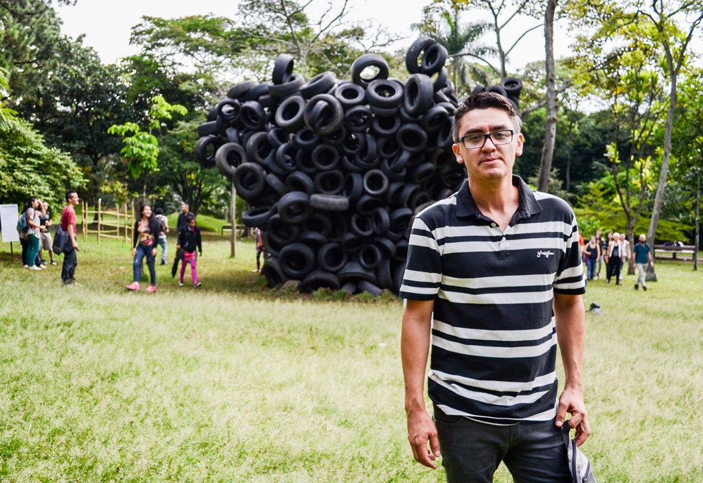 At first glance it appears as a section of a wall that has folded upon itself following an unexpected transformation; a metamorphosis utterly inappropriate for the materials that symbolize endurance and security: brick and mortar. As with some other similarly minded contemporary artists, Fredy Alzate is deeply influenced by architecture and its multiple vernacular surrogates. His work focuses on the observation of the constructive principles that guide precarious urbanization in his city of birth, Medellin, and by extension in the Latin American urbis at large. In his sculptures and installation pieces, the artist explores the inherent contradictions of uncontainable urban (under) development and the permanent mutations produced by the urgency of adapting buildings to the landscape in the city’s poor peripheries. Through careful observation of social space, his work is both political and poetic, as it draws its constructive psychology from literary references: Lugares en Fuga refers to Italo Calvino’s novel ‘Invisible Cities’. Built within the formal lexicon of architecture, his simulacrum dissects the marginalization of large sectors of the population across the continent. The apparent chaos perched up in the hills of the urban peripheries of Latin America challenge deceptive narratives of progress, bringing to mind that we live in a fragile culture of congestion. This fragility appears blatantly expressed in Alzate’s installation Aluvión (Landslide). The composition, made of resin-cast sculptures mixed with heaps of recycled demolition materials, re-enacts the precariousness of vernacular architecture when submitted to the brutal forces of nature, aggravated by deforestation and over construction.