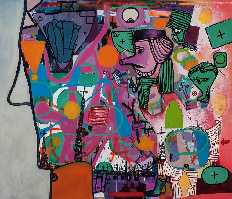 Gareth Sansom is an artist, teacher and provocateur who has placed painting at the centre of his artistic production. His themes cover pop culture, sexual transgression and painting’s own history as seen through the lens of 20th-century modernist abstraction.