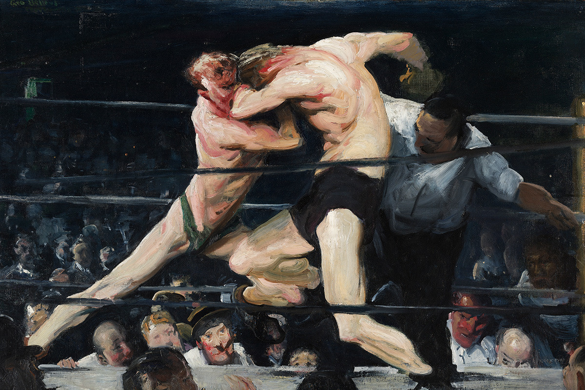 While the vigor of his work conveys an unselfconscious feeling, George Bellows was actually a remarkably intellectual painter, who mastered a variety of different color systems, including those of Hardesty Maratta and Denman Ross, and also explored complex systems of design, such as Jay Hambridge’s theories of "Dynamic Symmetry."