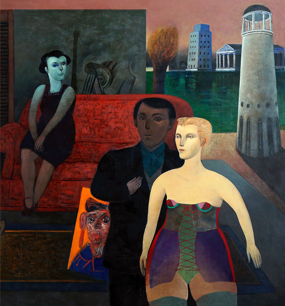 Gonzalo Cienfuegos studied architecture at the Escuela de Arquitectura y Arte in Santiago. He later left for Mexico and studied graphic design, painting and sculpture at the Escuela La Esmeralda in Mexico City. He returned to Chile in 1975 and is currently a professor of art at the Universidad Catolica in Chile. Cienfuegos’ art displays conversance with the gamut of Western painting, with obvious quotes from the old and new masters: Jan Van Eyck, Rubens, Velasquez, Goya, Giorgio de Chirico, Paul Delvaux and Balthus, among others. The individuals in Cienfuegos’ work are usually expressionless and introspective, occupying a strange world of their own. Cienfuegos exhibited at the Săo Paulo Brazil Biennal in 1989, where he received the Art Critics Circle Award, and has continuously exhibited in Chile, Argentina, France, Mexico and the US. His solo exhibits include:, Museo Nacional de Bellas Artes, Santiago, Chile; Art Miami, Galeria Tomas Andreu; Museum of Latin American Art, Long Beach, USA.