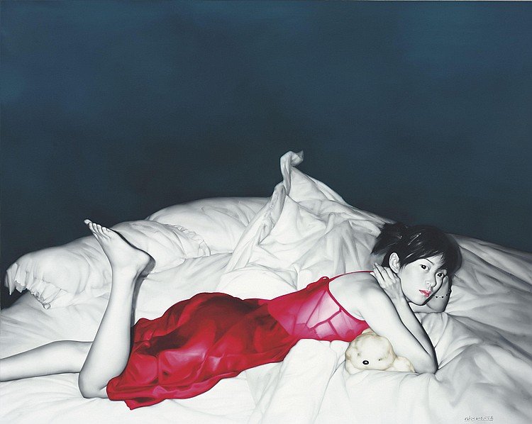 For more than a decade he has created provocative and large-scale works that portray youth struggling in China’s fast-changing modern society. These blurred photorealistic images - women smoking in their homes, young people in seductive underwear and poses - explore how China’s youths were seduced by the growing influences of westernisation and globalisation, as well as the artist’s pessimistic outlook on this generation. More recently He Sen has turned to reinventing classical Chinese landscape paintings, replacing his figures with symbols as bamboo and pine.