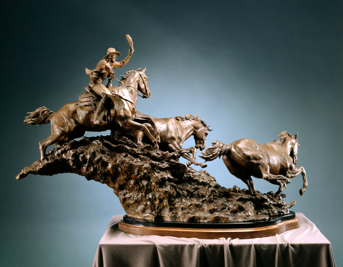 Born to a hundred-year ranching heritage, Herb developed an early fascination with the fluid movement of horse and rider, forming the basis for his strength in sculpting motion. Early forays into singing country music with a band and cartooning in the Army eventually gave way to sculpting. Herb’s subjects are often traditional western figures, but also include the more subtle characters of the old and contemporary West: shepherds, settlers and school teachers. mignery_catalogHis commissions number in the double digits and vary in size from the ten-inch “Pioneer Award,” presented by the Academy of Country Music, to a twenty-foot sculpture for the Hashknife Pony Express in Scottsdale, Arizona. Other monuments are located in Nebraska, Missouri, Hawaii, Colorado, New York, California, Wyoming, New Mexico, Texas and South Dakota. Herb has won numerous awards in shows across the United States, but considers acceptance by the general public the ultimate honor one could receive.