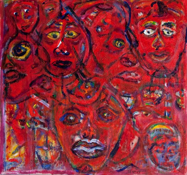 His compositions are characterized by vividly gestural mark-making that imply calligraphic roots but can hardly be recognized as sign-writing. Gentry’s swirling lines are neither expressionistic nor tachistic, but rather evoke a direct print of movement, made up of quick dashes and elongated strokes. The overlapping forms, fused by line and color, are diligently organized by an inner sense of rhythm that both structure and emanate from Gentry’s paintings. Figures, reminiscent of Picasso’s revolutionary abstractions and the so-called “primitive” western African masks that inspired him, organically come together in Gentry’s maze of lines and bright colors. These figures, that appear more as unconscious reminiscences of a presence rather than an actual silhouette, are alternatively the subject and background of the bustling activity that Gentry projects onto his canvas. As Romare Bearden once wrote, Gentry “celebrates his joy in living with lust pigments that swing across his canvases in a swirling activity. In his sensual enthusiasm for the drama of color and of life, everything in the works appears to be vibrating with a sonority that comes not so much from actual visual experience, but rather from an assimilation of many, many things both seen and felt and imagined.”