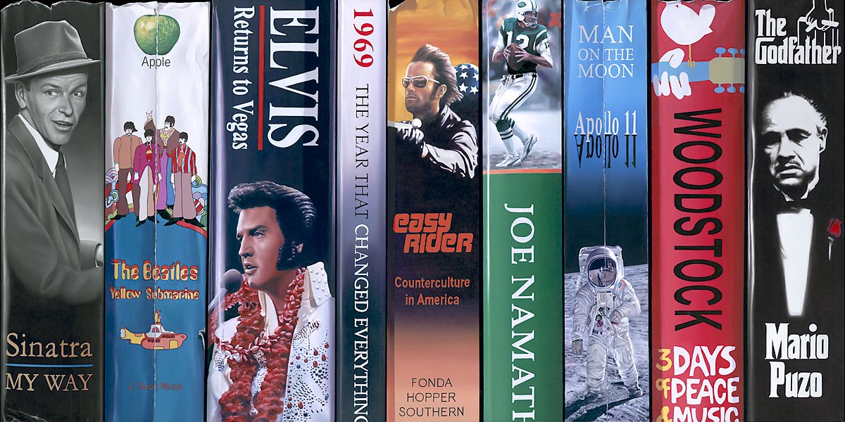 I love books. My personal collection is over exceeds one thousand books. I read novels from the classic to the obscure. I buy coffee table books for the photos and art books for the art. I have books from places I’ve been and lands that I want to see. The books I have in my library really tell the story of me. They show my likes, interests, and passions. If you want to know about someone, go to their house and look at their collection of books. As an artist, I express myself through my paintings. In order to tell my story, I chose books as a vehicle for those paintings. Creating this type of art is a painstaking process of research, intricate composition, and detailed painting. After coming up with a thematic concept, I choose the image for each of the books. A color background is then created which is complimentary to the image. Finally, I make up a title that in combination with the image will elicit a response from the viewer. So far, I have created over 60 paintings making up over 400 books. My artwork is in galleries throughout the country and purchased by art collectors around the world. These paintings can touch people in a very deep and meaningful way and it is gratifying to receive compliments on the detail and realism. Some celebrities have collected my art like; Heisman Trophy winner and two times Super Bowl champion Jim Plunkett, entertainer and rapper Lil’ Wayne, and media mogul Oprah Winfrey, to name just a few. The true reward is in the process of making art. Taking a blank canvas and transforming it with oil paint and brush into made up books that not only tell the story of my life but of our collective popular culture.