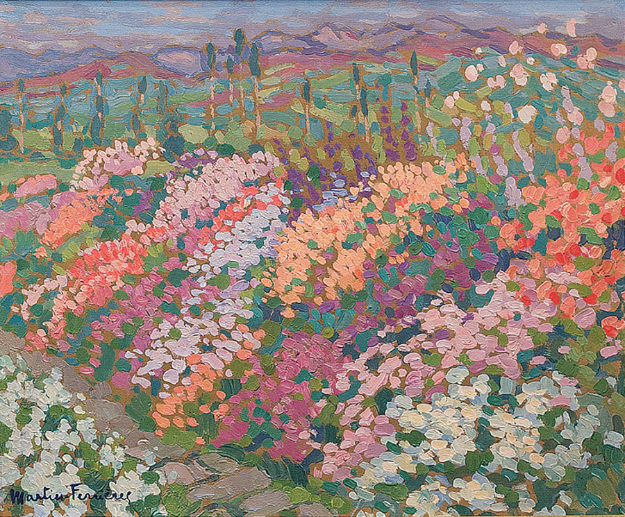 Jacques Martin-Ferrières, born in St. Paul (Tarn), was the son of the great Post-Impressionist artist Henri Martin (1860-1943). In addition to studying with and being profoundly influenced by his father, Martin-Ferrières studied with Fréderic Cormon (1854-1924) and Ernest Laurent (1859-1929). He exhibited regularly at the annual Salon des Artistes Français in Paris, where he became an hors-concours member. He won medals at the Salon in 1920 and 1923, and received a travel scholarship in 1924. In addition, Martin-Ferrières was awarded the prestigious Prix National in 1925 for Le Peintre, which was later exhibited at the Carnegie Institute in Pittsburgh. His important work, Marche d’Assisi, won him both the Gold Medal at the Paris Salon in 1928 and the Institut Français’ Prix Legay-Lebrun - it was acquired by the City of Paris. In 1937, Martin-Ferrières received a Gold Medal at the Exposition Universelle. During World War II, Martin-Ferrières joined the Resistance in the Dordogne, was captured and sentenced to be executed. His life was spared and, by 1950, he was painting and traveling again, most frequently to his beloved Venice. In 1856, the artist was made an Officer of the Légion d’Honneur. Major retrospective exhibitions of the artist’s work were held in Paris in 1939 and 1965.