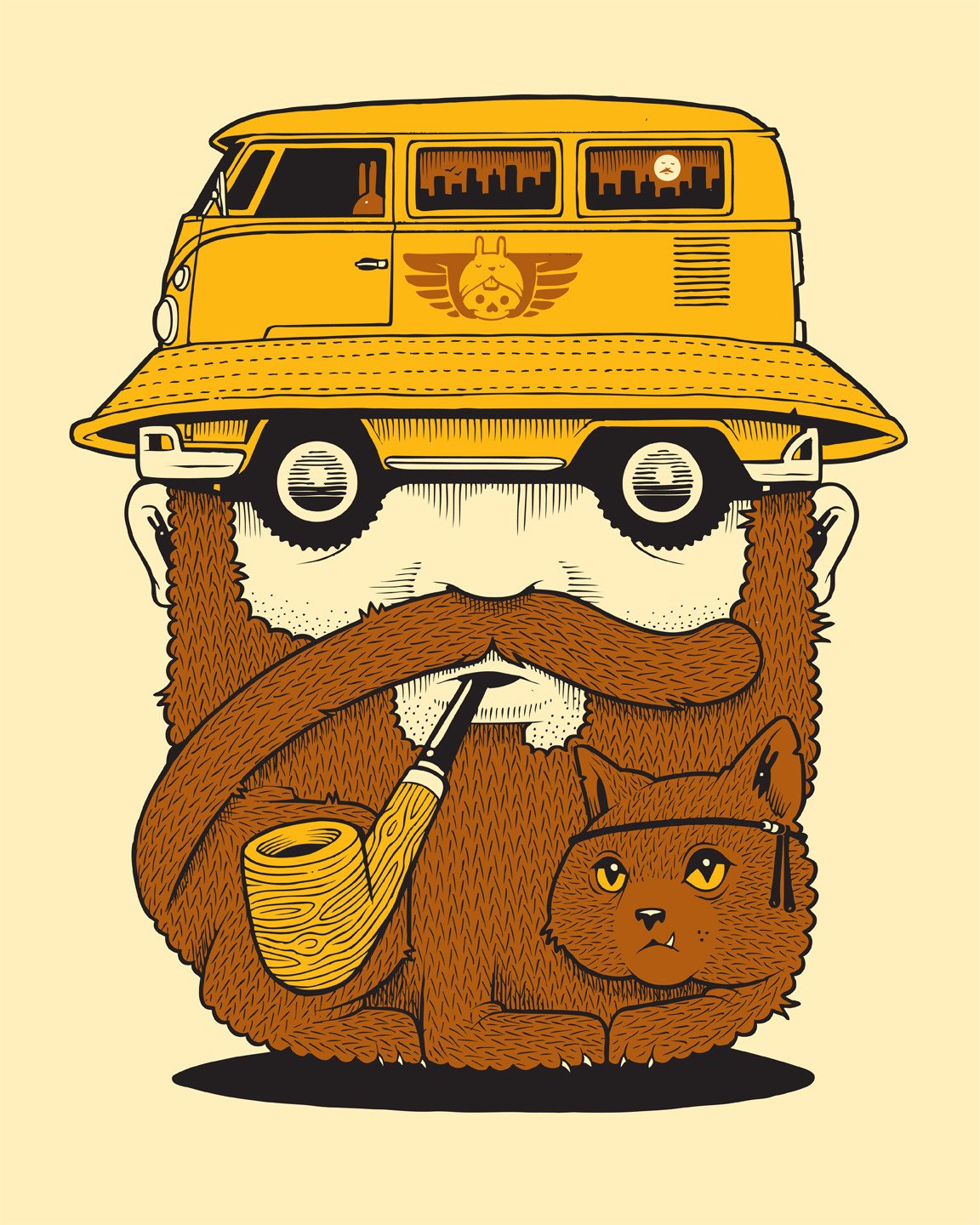 “At first glance, Fish's images seem to be rooted in an alternate world -- a world where gnomes travel via saddled dachshund-back and birds of all nations hatch adorned with the heads and hairstyles of every human stereotype imaginable. The bold, precise outlines give his ideas an immediate impact, but it's the aftertaste that really cuts deep. Everything comes with a story. I have never known Jeremy to create something without a reason for it to exist and an accompanying tale. His pictures are built from the simplest ingredients, ingredients with which the everyman can identify. I've been around the world and met a lot of "artists" who eat, shit, and breathe inside a bubble of self-aggrandizement, armies of yes-men at their sides ready to toot the bugles for every flimsy "breakthrough" they put forth. Jeremy Fish avoids that typecasting by boiling his intentions down to their most elemental forms: he makes pictures, he makes a lot of them, he makes them for himself, he makes them for the people, and he makes them from the heart. I am proud to say that I look up to him. You should too.” –Aesop Rock
