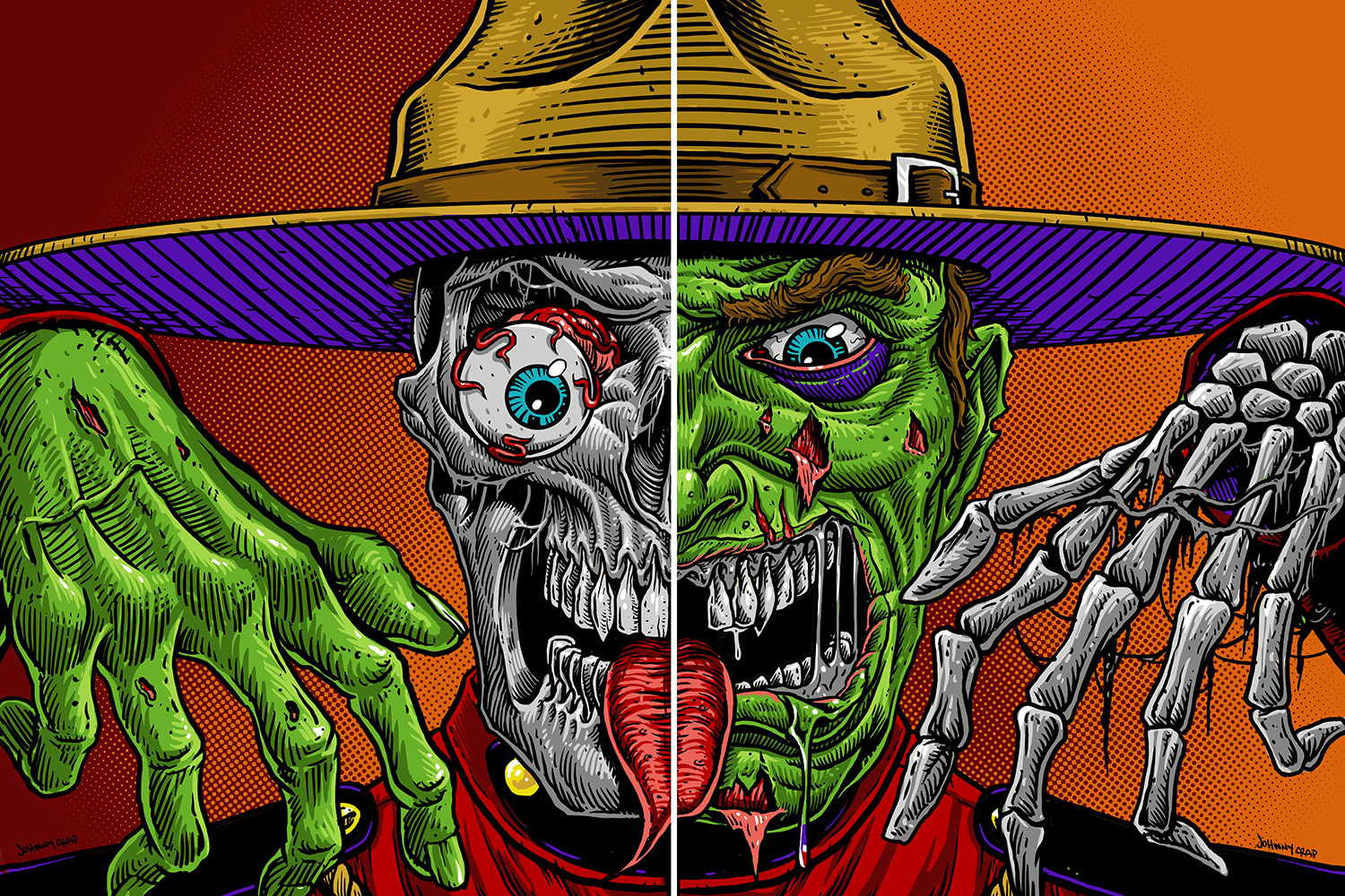 My name is Jonathan Bergeron and I wish I was Frazetta. I live in Montreal with my wife, 2 kids, a Boston Terrier and a cat. I do work for international clients & art collectors. I was born in Montreal but grew up in the suburbs in a town called Beloeil. That's where I got into BMX, then skateboarding and finally graffiti. I moved back to Montreal at 19 years old and really dove into graffiti, under the name "ZEN", and part of the NBC and KOPS crews. At some point I got back to studio painting, mostly oils. Made a name in the Kustom Kulture and Lowbrow art circles under the alias "Johnny Crap". I was doing lots of pinups, hot rods type of art. Around that time I was regularly published in the Horse Backstreet Chopper magazine as well as Ol Skool Rodz magazine. I moved away from that type of art after the birth of my first son. I did a whole lot of calavera( mexican skull) based art. That period lasted till 2013, although I still get requests for that type of art now and then. I also do merch design on the side. Over the years I have done work for Bands like Slayer, Anthrax, Avenged Sevenfold, Guns N Roses and Pearl Jam to name a few. I've also worked for Nike, Dethrone, Headrush, Forum Snowboards as well as Under Armour. These days I do a lot of dumpster and garbage realistic paintings. Oh, and my love of Star Wars got me published in a Star Trek book. Go figure. Still waiting on a call from Lucasarts.