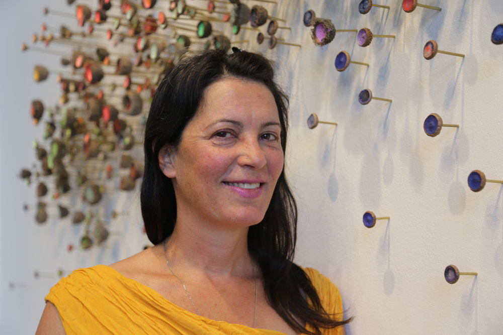 Boulder, Colorado based artist, Julie Maren, has been focused on creating installations for the last several years. Originally a painter and sculptor, Maren blended her skills with her desire to challenge the boundaries of painting, bringing about a new unique medium—“Biophilia” installations—the perfect marriage of her passions. These installations are both wall sculpture and 3-dimensional paintings, and have allowed Maren a vehicle to transcend the omnipresent dot patterns in her paintings by transforming them into expansive, multi-dimensional arrangements of color and pattern that play with shape, microscopic and macroscopic perspectives and transform with light and shadow.