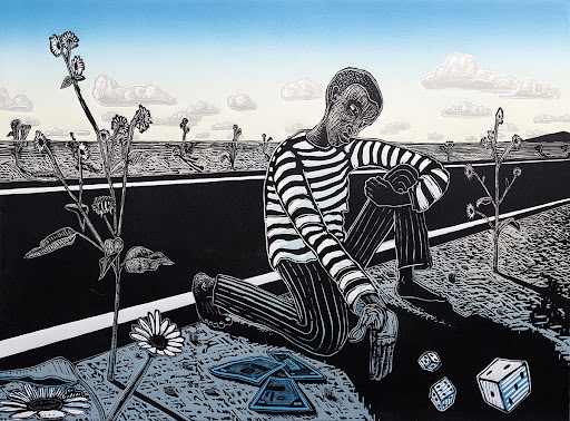 Born, raised and currently residing in Albuquerque, New Mexico, Karsten Creightney received his BA from Antioch College in Yellow Springs, Ohio. He subsequently completed the Professional Printer Training Program at the Tamarind Institute and received an MFA in painting from the University of New Mexico.