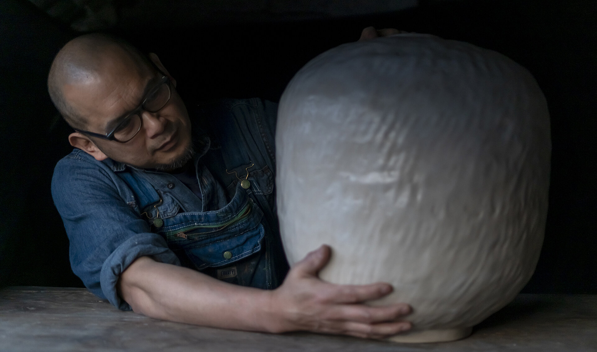 Kosi Hidama was born in Okayama, Japan. In 1993, he relocated to Belgium to work as a dancer. His subsequent career in dance and performance with Belgian and European artists took him to the essence of Occidental aesthetics, and while living as a foreigner in Europe, he simultaneously discovered the profound value of Japanese culture and the various possibilities of beauty and philosophy that it could still offer. After the catastrophic earthquake, tsunami, and nuclear accident in Fukushima, Hidama met potters who had been forced to evacuate. As a result of this meeting, he experienced profound sorrow, not only for the artisans from Fukushima who had fled for their lives, but also for all of the traditional, skilled craftsmanship that is disappearing around the world. Hidama became fascinated by the possibility of pottery as an art form and began creating his own works, aiming to discover what he, through his Japanese culture, could offer to Europe. Soon after, he started studying pottery at the Academie Beeldende Kunsten Anderlecht in Brussels. Axel Vervoordt became interested in Hidama's work, and in 2013 invited him to collaborate. Currently, Hidama creates pieces both for the Axel Vervoordt Company, as well as for his own studio.