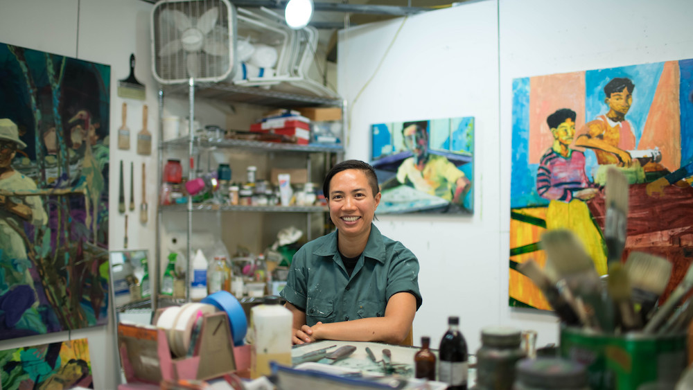 Maia Cruz Palileo is a multi-disciplinary, Brooklyn-based artist. Migration and the permeable concept of home are constant themes in her paintings, installations, sculptures, and drawings. Influenced by the oral history of her family’s arrival in United States from the Philippines, as well as the history between the two countries, Maia infuses these narratives using both memory and imagination. When stories and memories are subjected to time and constant retelling, the narratives become questionable, bordering the line between fact and fiction, while remaining cloaked in the convincingly familiar. Maia is a recipient of the Art Matters Grant, Joan Mitchell Foundation Painters & Sculptors Grant, Jerome Foundation Travel and Study Program Grant, Rema Hort Mann Foundation Emerging Artist Grant, NYFA Painting Fellowship, Joan Mitchell Foundation MFA Award and the Astraea Visual Arts Fund Award. She received an MFA in sculpture from Brooklyn College, City University of New York and BA in Studio Art at Mount Holyoke College, Massachusetts. Maia has participated in residencies at Skowhegan School of Painting and Sculpture, Maine, Lower East Side Print Shop, New York, Millay Colony, New York and the Joan Mitchell Center, New Orleans.
