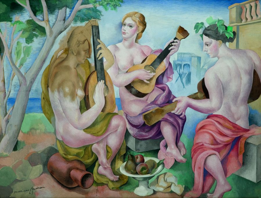 Mariano Andreu was a Spanish painter, drawer, enameling master, sculptor, and stage designer. He was born in Mataró in 1888 and lived his early childhood above the "Circo Barcelonés" in the Calle Montserrat. Early on he was affiliated to the "Noucentistes" movement, named by his friend Eugenio d'Ors. He studied in London under Alexander Fisher an enameller of the Central Arts & Crafts School in London. Returning to Barcelona Andreu made one of the world's largest enamels, the triptych "L'Orb" using contemporary enameling techniques of the day. He left Spain for Paris, with his wife Philomene ("Filo") Stes, he became involved in stage design; he carried out works such as Voleur d'Images, Sonatina for the Opéra-Comique in 1929, La guerre de Troie n'aura pas lieu for Louis Jouvet's Théâtre de l'Athénée (1935). For the Ballet Russe de Monte Carlo he designed costumes and sets for Capriccio Espagnol, which premiered in Monte Carlo in 1939. He designed costumes for the 20th Century Fox film That Lady (1955, starring Olivia de Havilland and Paul Scofield) and the short ballet film Spanish Fiesta (1942). He was invited to London by John Gielgud to design the sets and costumes for Shakespeare's Much Ado about Nothing, in 1949. He also designed the sets and costumes for Hector Berlioz's Les Troyens, directed by Gielgud at Covent Garden in 1957. In 1951 he designed Sir Alec Guinness's Hamlet and in 1955 All's Well That Ends Well, for Noel Willman. Early exhibitions in London were seen at the Claridge Gallery and the Leicester Galleries. Throughout his life, Andreu produced some 30 Livres de Luxe, for which he early on gained an enviable reputation as one of the finest lithographers and illustrators of his day. His work is held in many public and private collections in France, the United States, Great Britain, and Spain.