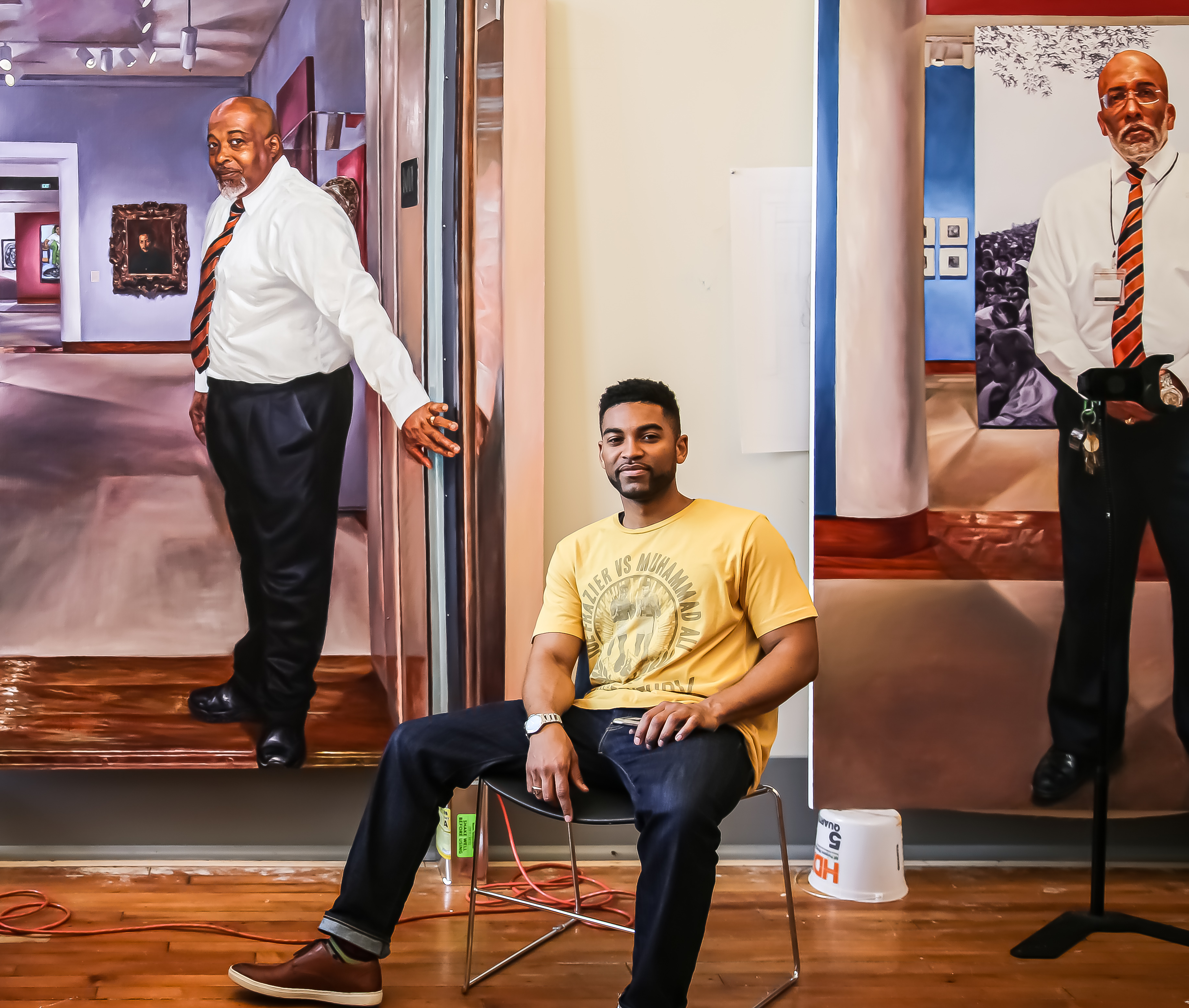 MARIO MOORE’S BEAUTIFULLY RENDERED REALIST PAINTINGS FOCUS ON THE PERSONAL, SOCIAL AND POLITICAL IMPLICATIONS OF OUR SEGREGATED SOCIETY. PRESENTING STORIES OF HIS OWN LIFE AND THOSE OF FRIENDS AND FAMILY, MOORE WEAVES IN MULTIPLE REFERENCES TO HISTORY, ART, POLITICS AND LITERATURE TO COMPLETE HIS NARRATIVE. MOST RECENTLY HE SPENT A YEAR AS THE HODDER FELLOWSHIP ARTIST IN RESIDENCE AT PRINCETON UNIVERSITY TO PRODUCE THE WORK OF SEVERAL LIFETIMES,A SERIES FOCUSED ON THE AFRICAN AMERICAN SERVICE WORKERS EMPLOYED ON THE CAMPUS OF PRINCETON UNIVERSITY. MOORE’S WORK HAS BEEN EXHIBITED WIDELY INCLUDING AT THE CHARLES H. WRIGHT MUSEUM, DETROIT; THE DETROIT INSTITUTE OF ARTS; THE LEWIS CENTER FOR THE ARTS AT PRINCETON UNIVERSITY, NJ; THE SMART MUSEUM OF ART, CHICAGO, IL, DAVID KLEIN GALLERY, DETROIT, MI; THE URBAN INSTITUTE OF CONTEMPORARY ARTS, GRAND RAPIDS, MI AND IS CURRENTLY IN THE SMITHSONIAN SITES EXHIBITION (TRAVELING), MEN OF CHANGE. IN 2021 HE WILL HAVE A SOLO EXHIBITION AT THE CHARLES H. WRIGHT MUSEUM OF AFRICAN AMERICAN HISTORY IN DETROIT. MARIO MOORE, A DETROIT NATIVE, RECEIVED A BFA FROM THE COLLEGE FOR CREATIVE STUDIES, DETROIT, MI AND AN MFA IN PAINTING FROM THE YALE SCHOOL OF ART, NEW HAVEN, CT. HE LIVES AND WORKS IN DETROIT.