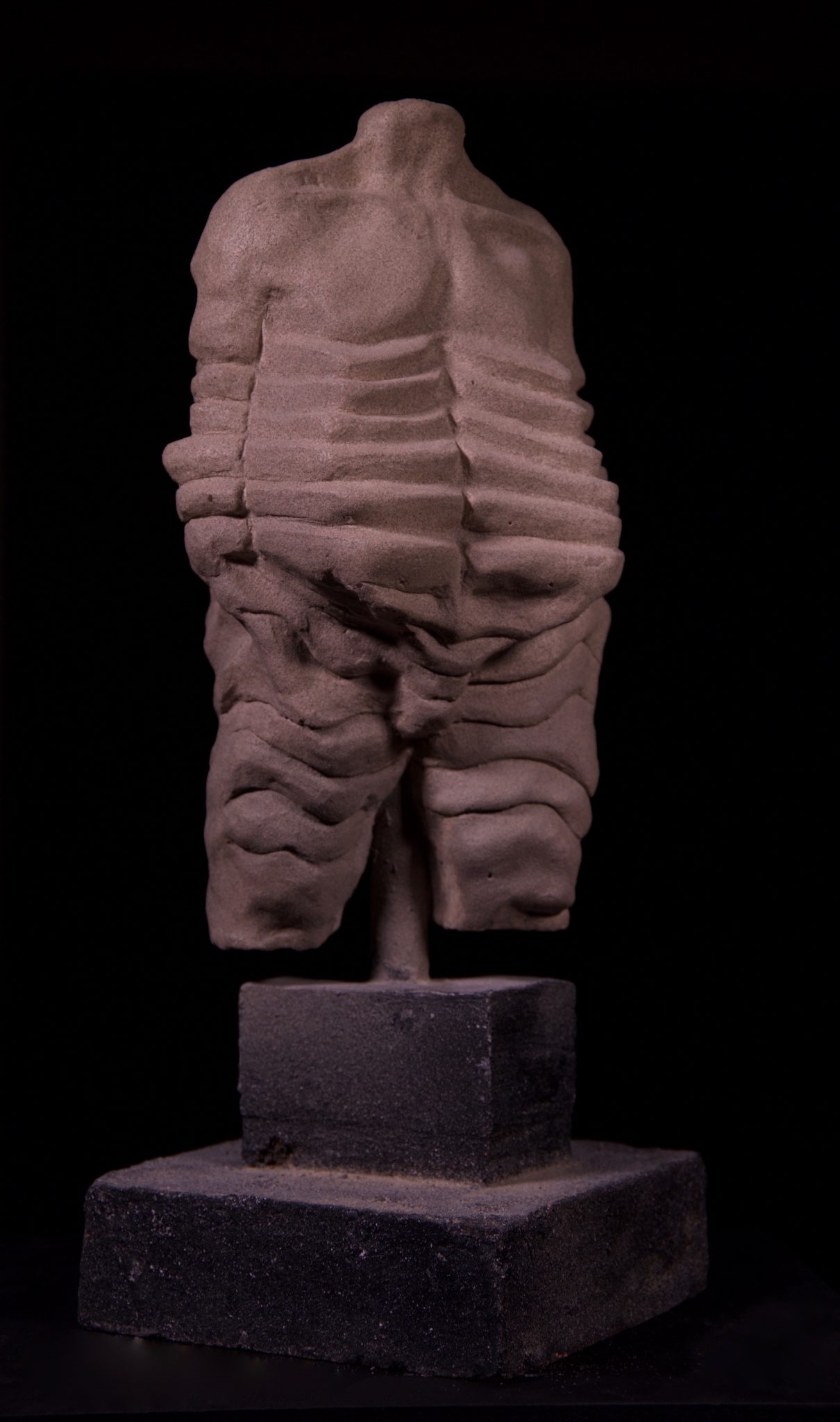My process both reflects and explores levels of consciousness. I continue to build upon the idea of codependence versus coexistence through the lens of the individual and collective conscious and unconscious, and the duality of order and disorder within the masculine and feminine archetypes. Most of my recent work begins with inspiration from the human figure. I use measurements from live models to render the form; in this stage all of my decisions are conscious and deliberate. My process then becomes more intuitive and I rely on the gesture and spiritual presence of the model as a guide to abstract the form. This process results in the emergence of anthropomorphic, exoskeleton-like beings that are meant to represent the world between the physical and spiritual psyche. When I am creating a form, I often turn it upside down or on its side and work on it from a different perspective. When I do this, it allows me to access new information and the piece transforms into something more. I am fascinated with exploring the individual expression of physical and emotional archetypes in an effort to better understand how we are all connected. It is through creating that we connect to ourselves, and in doing so we connect to all of humanity.