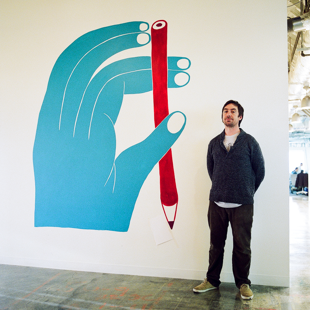 Nathaniel Russell was born and raised in Indiana. After college, Russell spent several years in the San Francisco Bay Area making posters, record covers, and woodcuts. He returned to his home city of Indianapolis and now spends his time creating drawings, fake fliers, bad sculptures, wood shapes, and music. Russell’s work is regularly shown around the world in both traditional galleries and informal spaces, usually surrounded by an expanding list of friends, collaborators, and like-minded folk. He frequently returns to his second home of California to work with friends on projects as varied as murals, print workshops, and backyard musical performances.