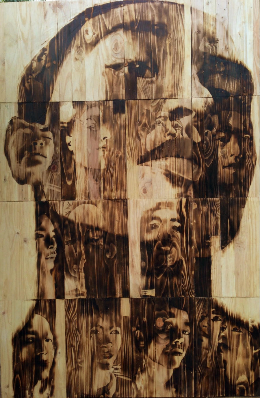 Born in 1980 in Hanoi, Ngo Van Sac’s wood burn portraits represent a pivotal point in his artistic path. He discovered this powerful technique when he started painting on wood panels 10 years ago. Unhappy with the paintings he created, he burned them all. In the flames, he observed the natural colours and patterns created by the heat. His perspective shifted and he saw fire as more than a destructive element; it evoked powerful feelings and emotions tied to the ebb and flow of life itself. By combining fire and natural pinewood, Ngo Van Sac truly found himself.