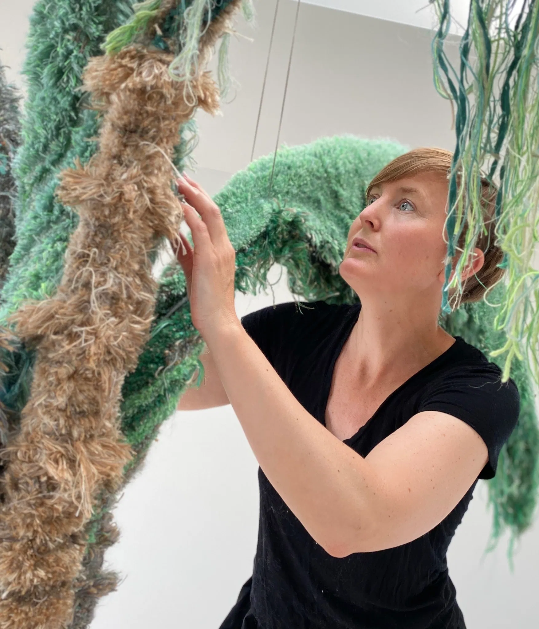 Nina K. Ekman is a Norwegian visual artist born in 1979, working from Copenhagen. Nina draws inspiration from life and nature and works mainly on two conceptual axes. An emotional level: bringing awareness to memory, death and loss – and a societal level: dealing with sustainability, circular economy, fast fashion, consumption, nature, next generation. Ekman uses varying techniques such as tufting, painting, and etching. Many of Nina’s pieces investigate the unsustainability of modern lifestyle inviting the observer to reflect upon our linear way of consuming and the consequences for the future of the planet. Also, sustainability and the circular thinking is integrated in the art pieces by the choice of materials, whereas Nina uses both second hand clothes and excess yarn from the textile industry. Ekman is partly autodidact but has some education from Parsons School of Art & Design and Eindhoven Design Academy Ekman’s work floats between paint and textiles, sculptures and etchings. She is always experimenting and trying to find new ways to express herself. Most of her works are large scale and the last year she has been focusing on tufting as a way of building textile sculpture. She has exhibited in Norway, Sweden, Denmark and France