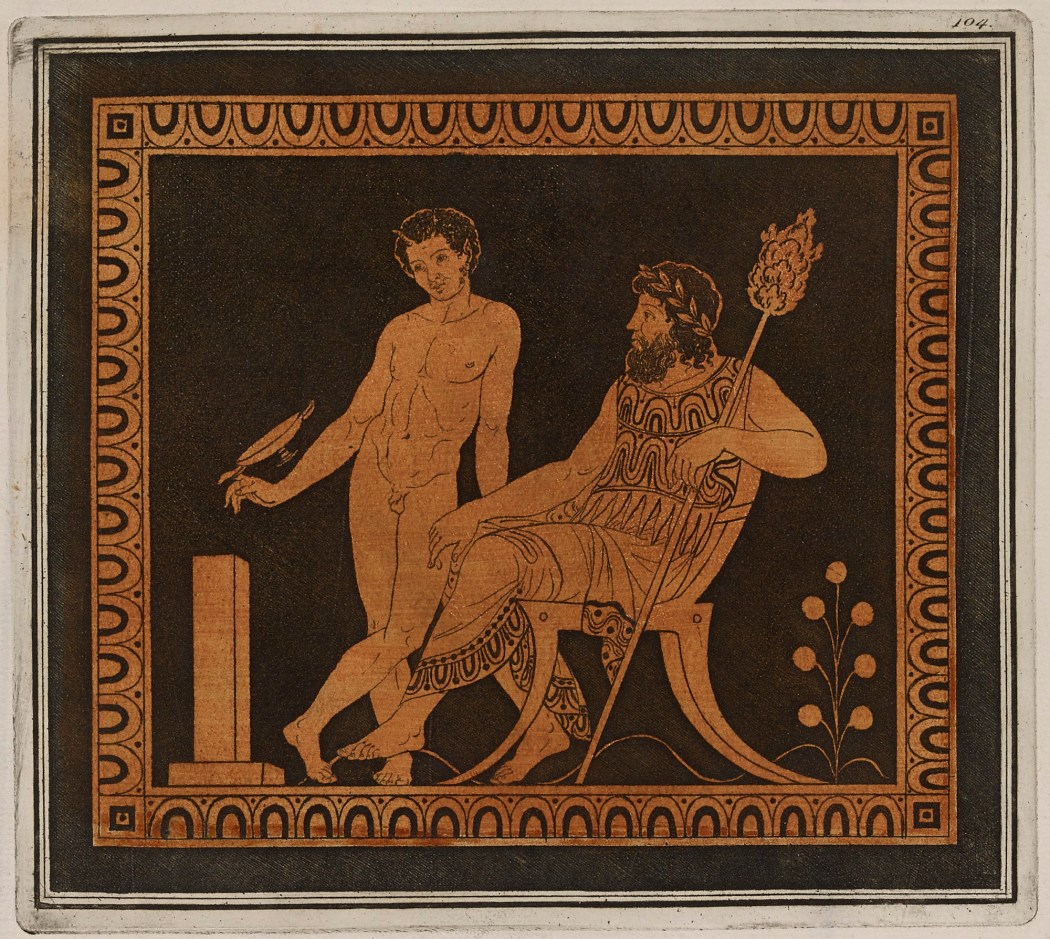 In 1772 Hamilton's first collection of vases was bought by the British Museum. The four volumes of the Antiquites, printed by Francesco Morelli and copiously illustrated (and with many copies hand-painted), form one of the most beautiful books ever made. Their illustrations were directly copied by Josiah Wedgwood and other pottery manufacturers, and fostered the Neoclassical taste for outline drawing and engraving adopted by John Flaxman and others.