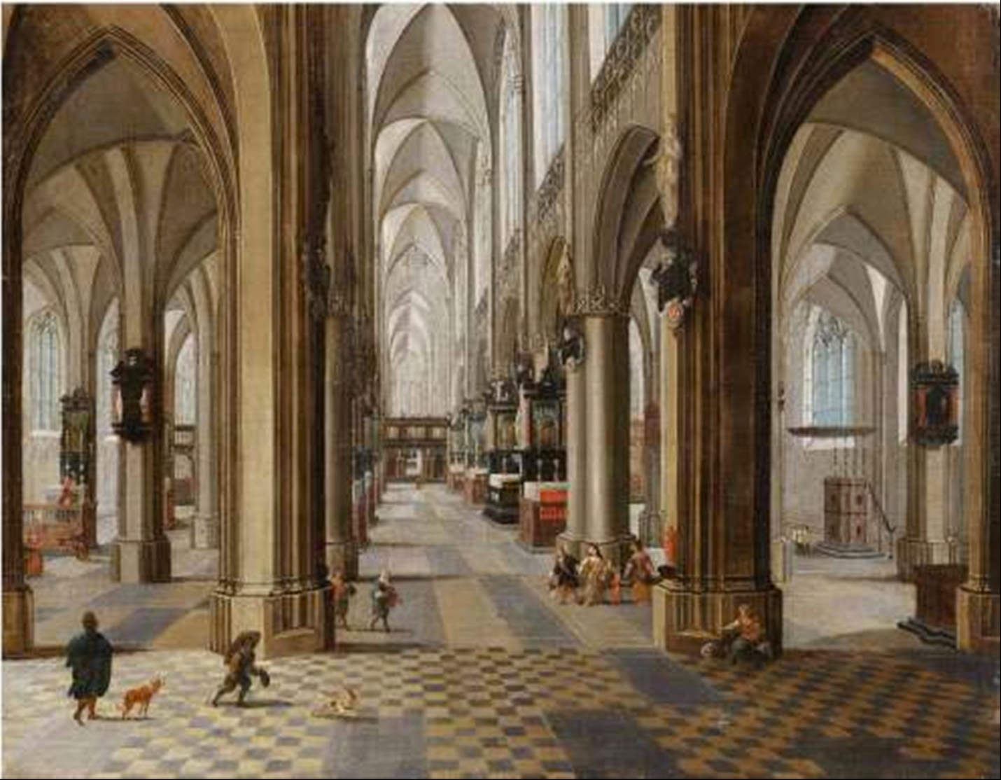 Pieter Neefs the Younger or Pieter Neeffs the Younger (bapt. 23 May 1620 – after 1675) was a Flemish painter who mainly specialized in architectural interiors of churches. Son of the prominent architectural painter Pieter Neefs the Elder he started out working in his father's workshop in Antwerp. He collaborated with various leading staffage painters to create lively church interiors.