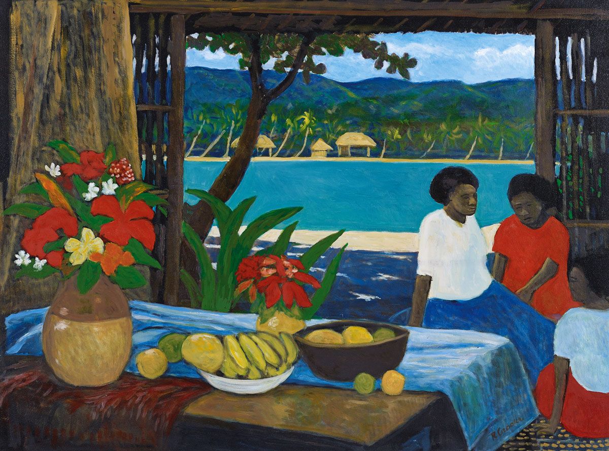Crooke returned to Melbourne in 1955 and in 1959 held a successful solo exhibition at Australian Galleries Melbourne. Now, highly sought after by major galleries, he returned to Cairns and with the picturesque Yorkey’s Knob as his base, travelled the tropics, the Gulf country, central Queensland, Fiji and Tahiti, creating some of the major pictures of his career. The experience of life in the tropics became a key element in his work.