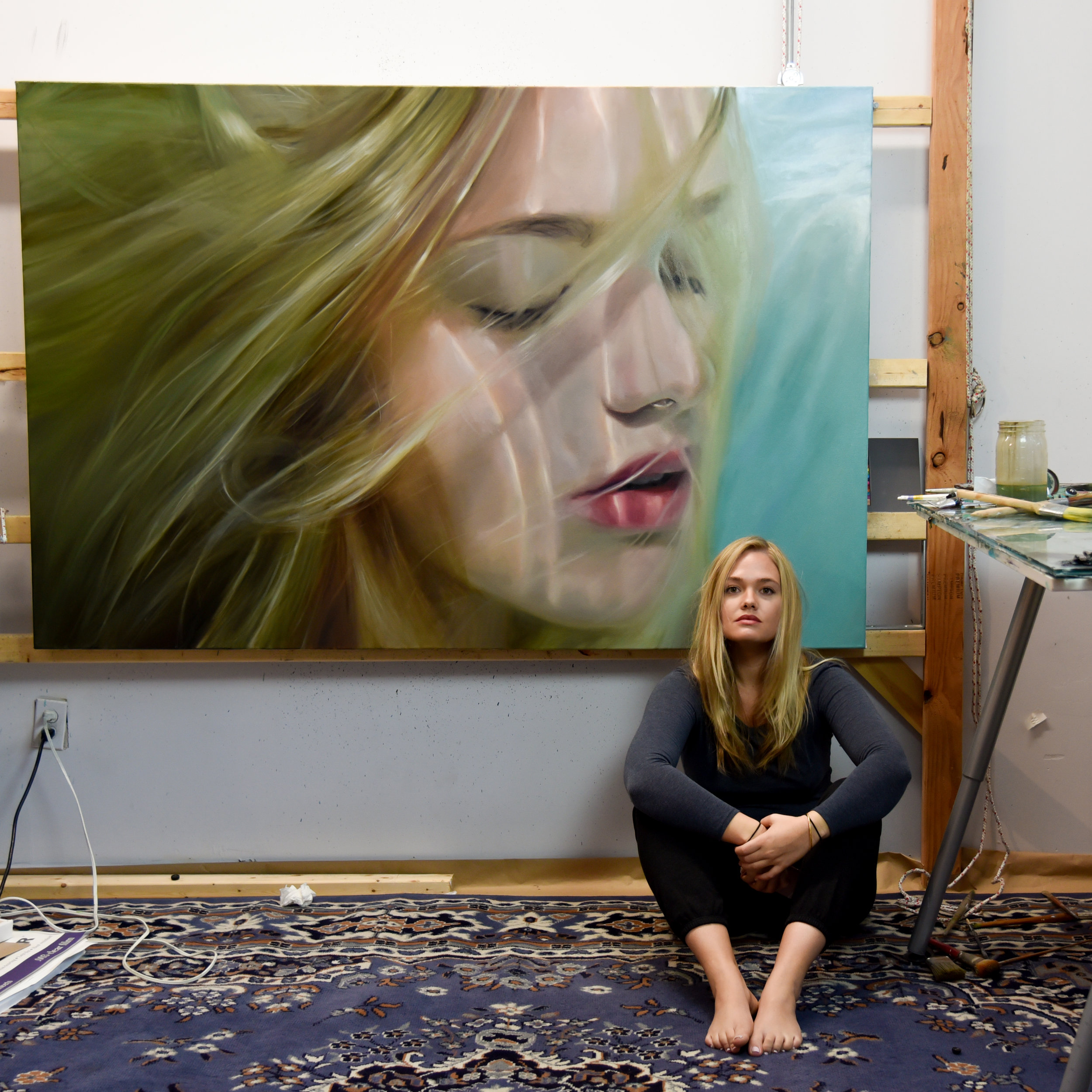 Reisha Perlmutter was born and raised in Naples, Fl. She relates her work directly to her experiences of light and nature from childhood, and her relationship growing up around the presence of water. Since childhood, Perlmutter has found her internal language and understanding of the world through creating, and through art. Images of the natural world, painted themselves onto her psyche. Memories of the silver Gulf of Mexico gleaming after a summer downpour continue to speak to her work, especially in her newest series AQUA. Perlmutter studied at Bates College in Maine to expand her greater thought process and language. However, after two years, she was ready to devote herself entirely to her art.