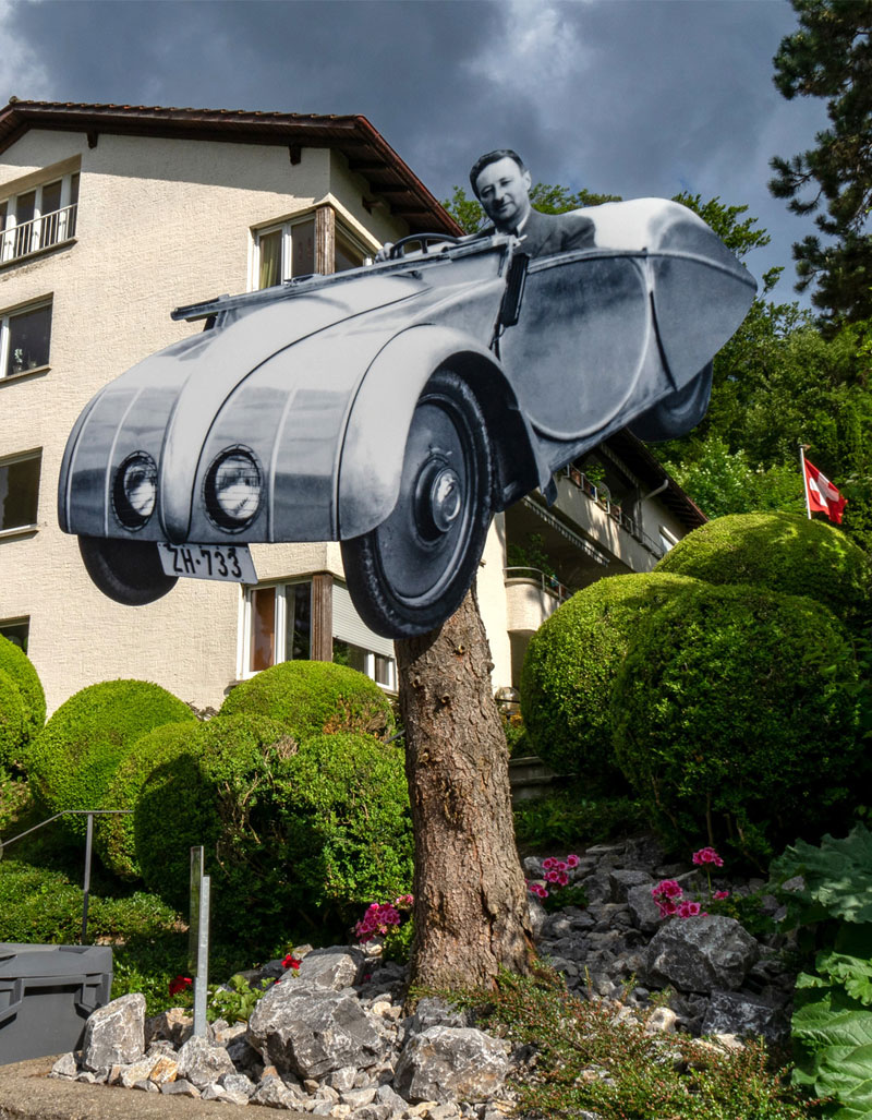 Rémy Markowitsch’s works are based on examinations of themes as diverse as literature and research, expeditions and discoveries, the appropriation of the foreign, colonialism, the passion of collecting and addiction. At the same time they reflect the use of different media–photography, books, video or language. The light–Illuminating, elucidating, transluminating–plays a central role. Rémy Markowitsch puts on a headlamp, as it were, to explore the visual order of books, specifically, the photographs he finds in them of plants, animals, people and landscapes. He takes pictures of what appears when one page of a book is transluminated, that is, when the motifs that appear on two sides of a single page are seen simultaneously, creating a new visual cipher: in this case, one plus one is more than two. Most of Markowitsch’s photographs are based on his technique of translumination, as also in the series 'We are family' (2010), which refers to a series of three fluoroscopies, extracted from the book Screened Bodies? (X-ray images) by Dr. Karl Döhmann. Here, he adds a new aspect to the transillumination body of work, as far as they are transilluminations (of the page) of transilluminations (the X-ray images). Also in ALPS Rémy Markowitsch deals with the book as medium regarding its material qualities by raying pages with pictures, thus making them transparent, and generating new hybrid and former quasi unconscious images. Concerning the monochrome picture of mountains a confusing, disconcerting point of view arises by using this technique which gets up and down, left and right mixed up–almost as if one would watch the panorama falling from the mountaintop instead of staying in the safe position as alpine tourist. Thus in ALP 02 emerges not only the image of a–politically often abused–safe and ideal mountain scene (the work's source is one of the annual books of Swiss Alpine Club) but also the dark, threatening side of the mountains.–Isabel Fluri
