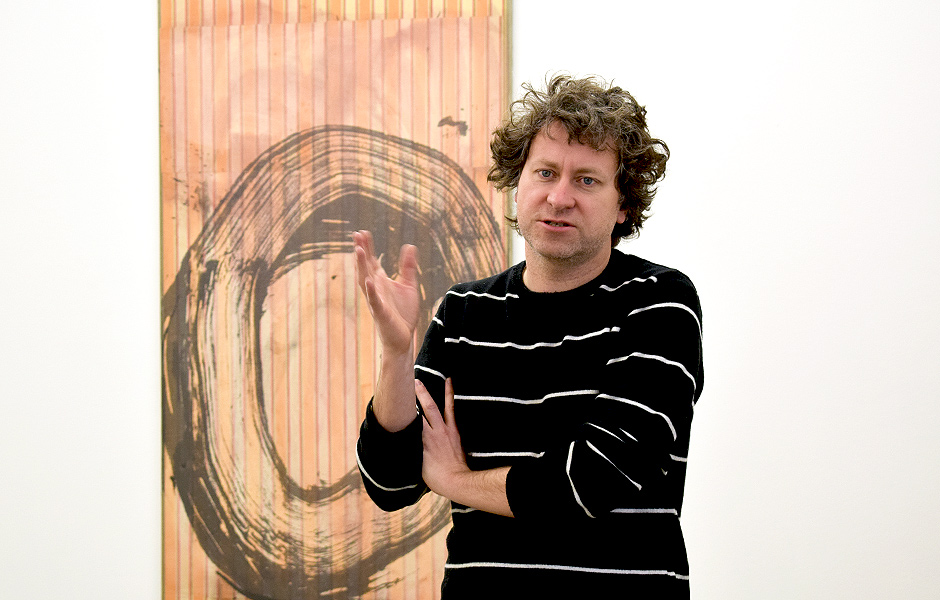Renaud Regnery embraces the tension inherent in the idea of ornamentation. His paintings on canvas-mounted, mass-produced wallpaper and silkscreens beg the question: do accessible, attractive-yet-purposeless objects live up to their potential to enrich society or merely render it more banal? In overlaying the decorative paper and prints with spray paint and acrylic, he blurs boundaries as a means of exploring the aesthetic and psychological aspects of social conventions. Inviting further reflection on the importance of presentation, for his 2011 exhibition of these works, Regnery installed a raised platform across sections of the gallery floor, changing the angle at which the viewers saw the works as they moved through the exhibition.
