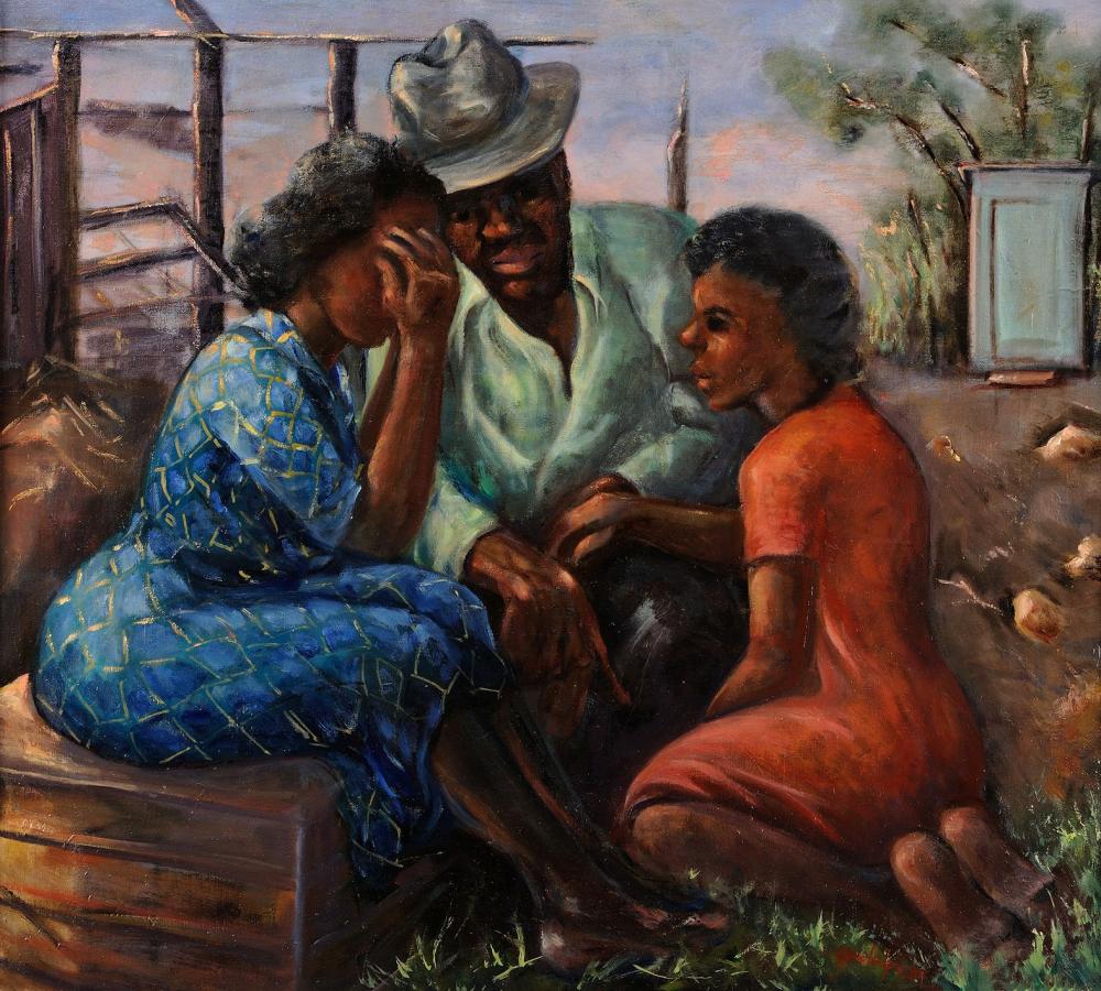Rex Goreleigh was born in Penllyn, PA, where he took to art as a way of coping with a speech impediment which he had since he was a child. He then moved to Philadelphia at the age of 15, when his mother died. A year later, he left for Washington DC, to attend high school there. In 1920, Goreleigh attended a series of displays of African-American art at the Harmon Foundation exhibition in New York. Seeing the exhibition inspired him to learn how to paint and draw, in the off time of his day job of waiting tables. Thirteen years later, Goreleigh waited a table for the prominent Mexican muralist, Diego Rivera, who gave Goreleigh the opportunity to watch him work on portraits meant for Rockefeller Center. In 1934, under the WPA, Goreleigh met and worked with Ben Shahn, another popular artist. Until 1936, he studied art in Europe, and upon returning to America, he taught in both Harlem and established an art center in Greensboro, North Carolina. Alongside Norman Lewis, the pair worked in Chicago as well, in art centers in southern Chicago. Goreleigh moved to Princeton in 1947, and directed Princeton Group Arts for another 6 years. He died in 1986.