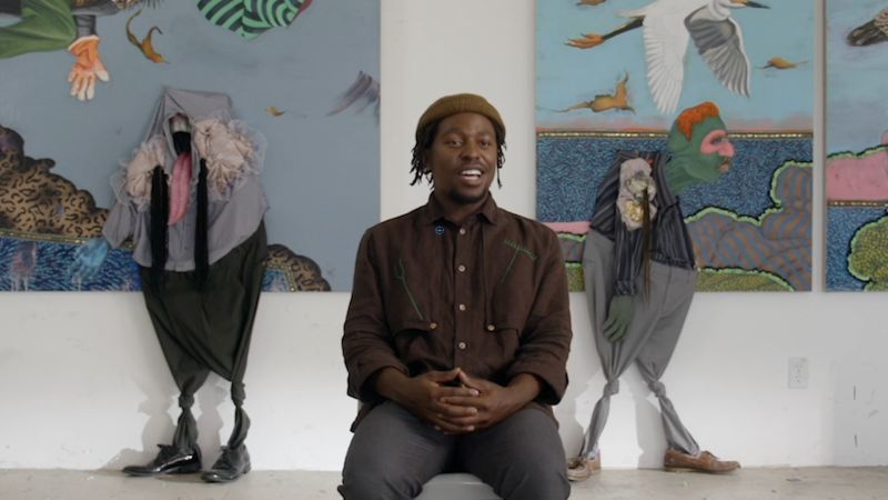 Through painting, sculpture, and spatial intervention, Simphiwe Ndzube stages an introduction to his imaginative universe: the Mine-moon. He states, "We begin in the real world and through interaction with the work enter a fabulist tale in progress. I’ve attempted to create the genesis of a cosmology that finds itself in the uncharted lands and trackless seas. In it exists characters, gods, and demigods—different people influenced by the post-apartheid black South African experience. It emerges from the tradition of magical realism and is expanding to points currently unknown." Narrative influences include Ben Okri, Alejandro Jodorowsky, Gabriel García Márquez, Italo Calvino, and Zakes Mda. In particular, Ndzube highlights Magical Realism: Theory, History, Community by Wendy B Faris and Lois Parkinson Zamora which describes magical realism as "a mode suited to exploring—and transgressing—boundaries, whether the boundaries are ontological, political, geographical or generic. [It] facilitates the fusion, or coexistence, of possible worlds, spaces, [and] systems that would be irreconcilable in other modes." Ndzube's recent body of work tells a story of power and conflict—within it is a focus on the people affected by abuses of power; these figures are on their own search for freedom, love, and meaning in a setting that has deemed them, as Frantz Fanon phrased it, the wretched of the earth.
